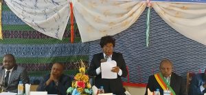 The Public Independent Conciliator, Mme Telelen Dorothy Atabong spouse Motaze delivering her opening statement during the Townhall meeting
